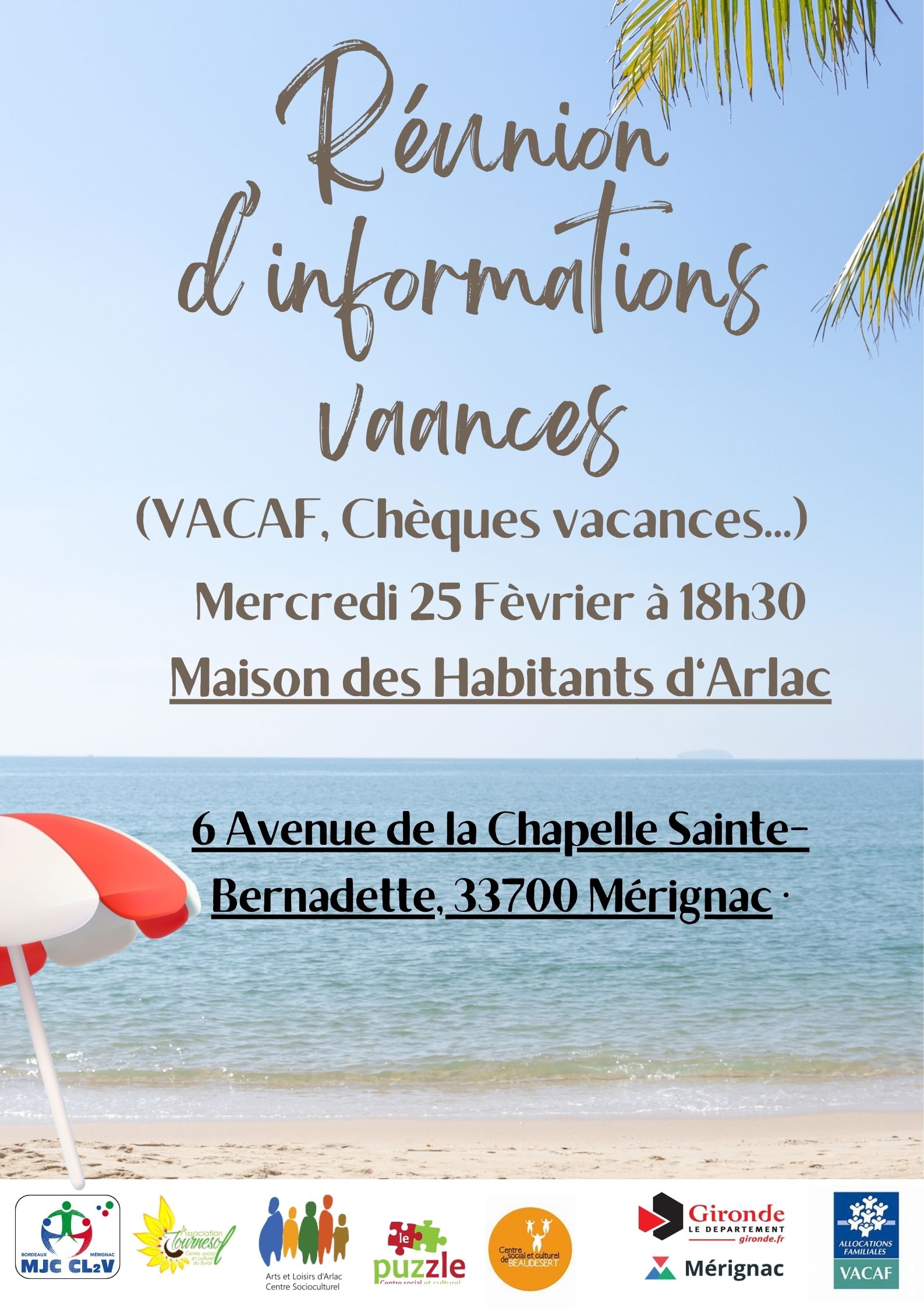 Adultes: Réunion d’information sur les vacances : VACAF ,chèques vacances …