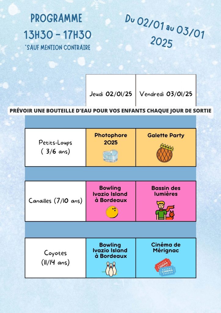 Programme vacances ALSH de janvier 2025