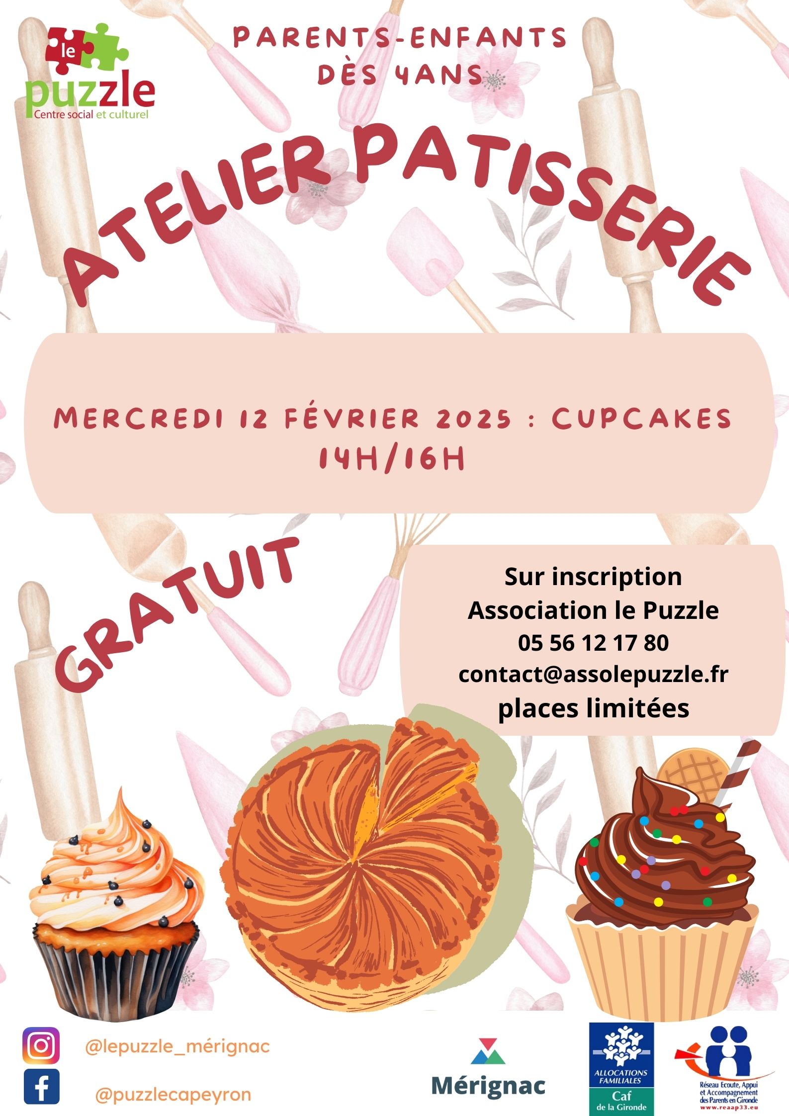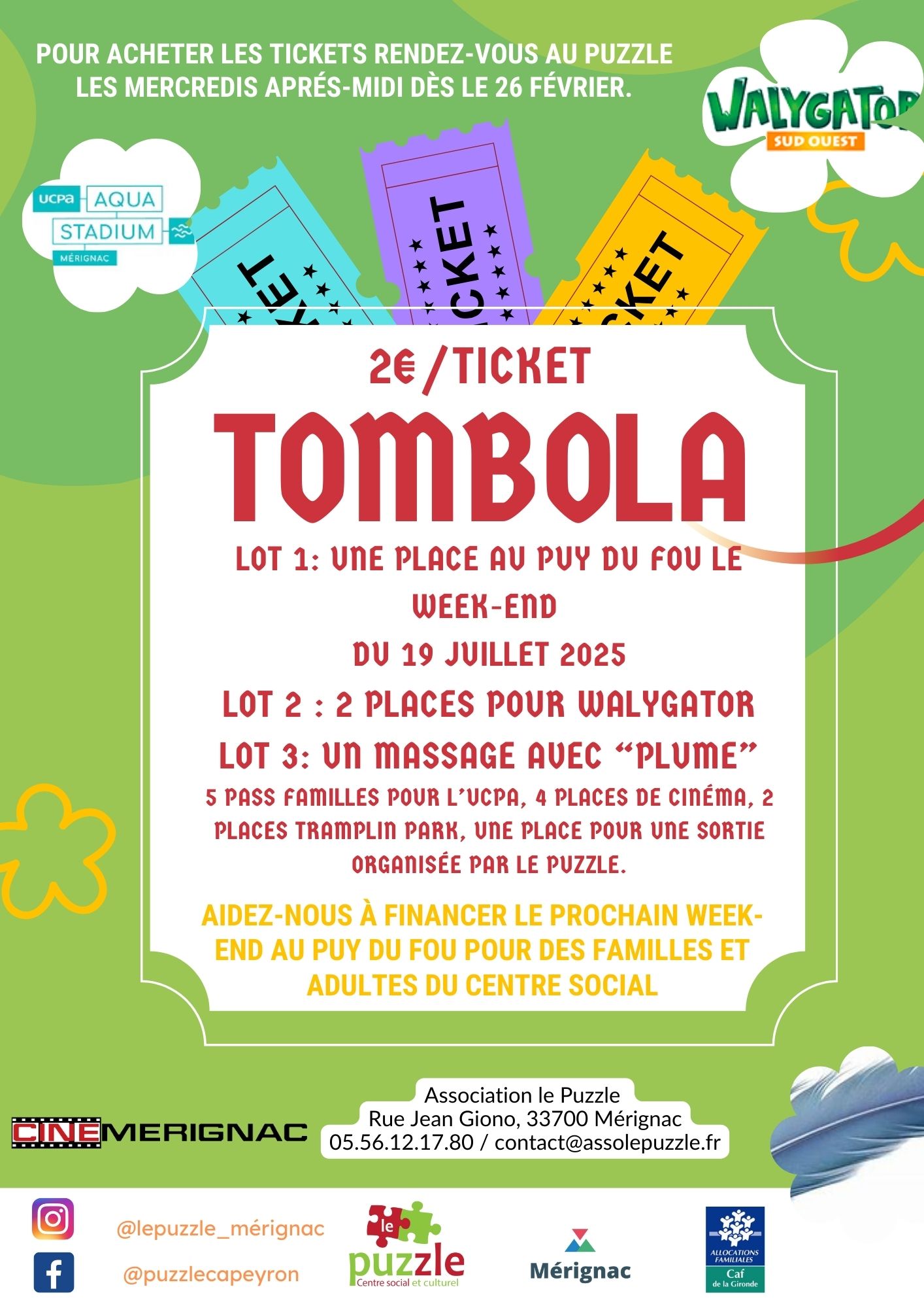 Le Puzzle rue Jean Giono, MERIGNACInscriptions à partir du mardi 11 février 2025 à partir de 14h00 Après-midi inscriptions sur RDV de 14h00 à 19h00 le 11 février 2025 Tarif en fonction du quotient Familial
