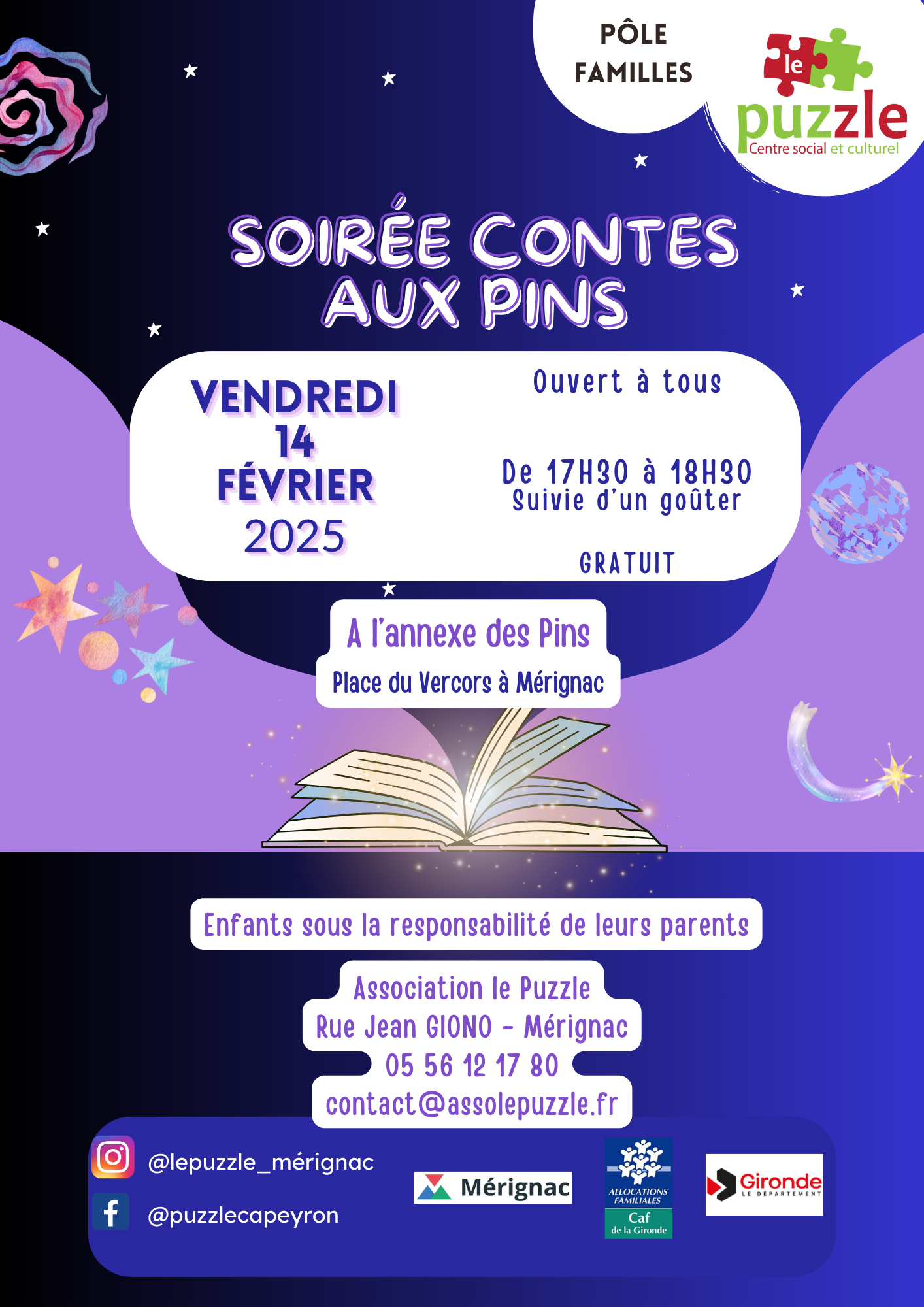 Le Puzzle rue Jean Giono, MERIGNACEn famille – Soirée Contes aux Pins